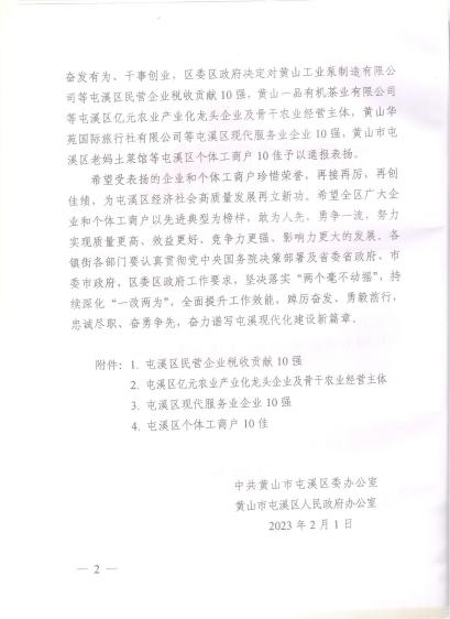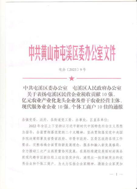 2023年度,我公司將珍惜榮譽再接再厲,創(chuàng)新創(chuàng)業(yè),再創(chuàng)佳績,為屯溪區(qū)經(jīng)濟社會高質(zhì)量發(fā)展再立新功,貢獻智慧和力量。