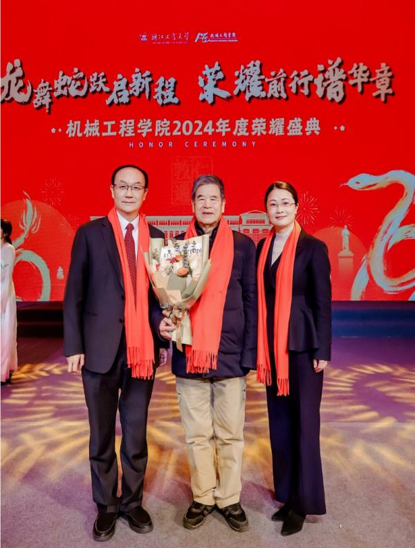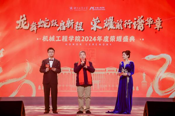 2024年1月15日晚,浙江工業(yè)大學機械工程學院2024年度榮耀盛典晚會在屏峰校區(qū)板球館報告廳舉行。浙江工業(yè)大學化機64屆校友、黃山良業(yè)智能控制股份有限公司終身名譽董事長項美根,學校黨委學工部部長、學生處處長姚鵬,學校公共事務管理處處長彭廷紅,學校團委副書記李亞飛,學院領導班子姚建華、章嫦華、譚大鵬、李研彪、樸鐘宇、李曰兵、夏航出席晚會,學院師生共600余人參加活動,共同見證機械榮耀。