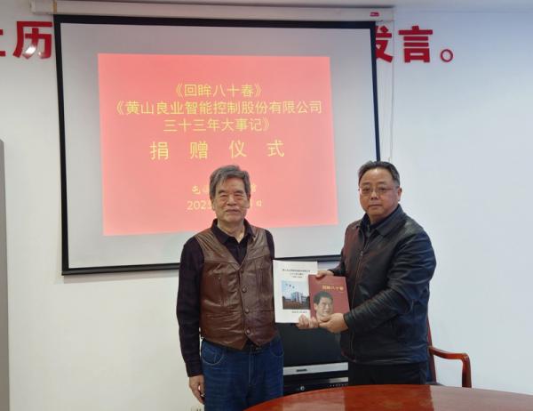 文章詳情2025年3月13日上午, 公司終身名譽(yù)董事長(zhǎng)項(xiàng)美根先生以個(gè)人名義分別向黃山市檔案館和屯溪區(qū)檔案館捐贈(zèng)圖書(shū)《黃山良業(yè)智能控制股份有限公司三十三年大事記》(1992-2024)和《回眸八十春》。